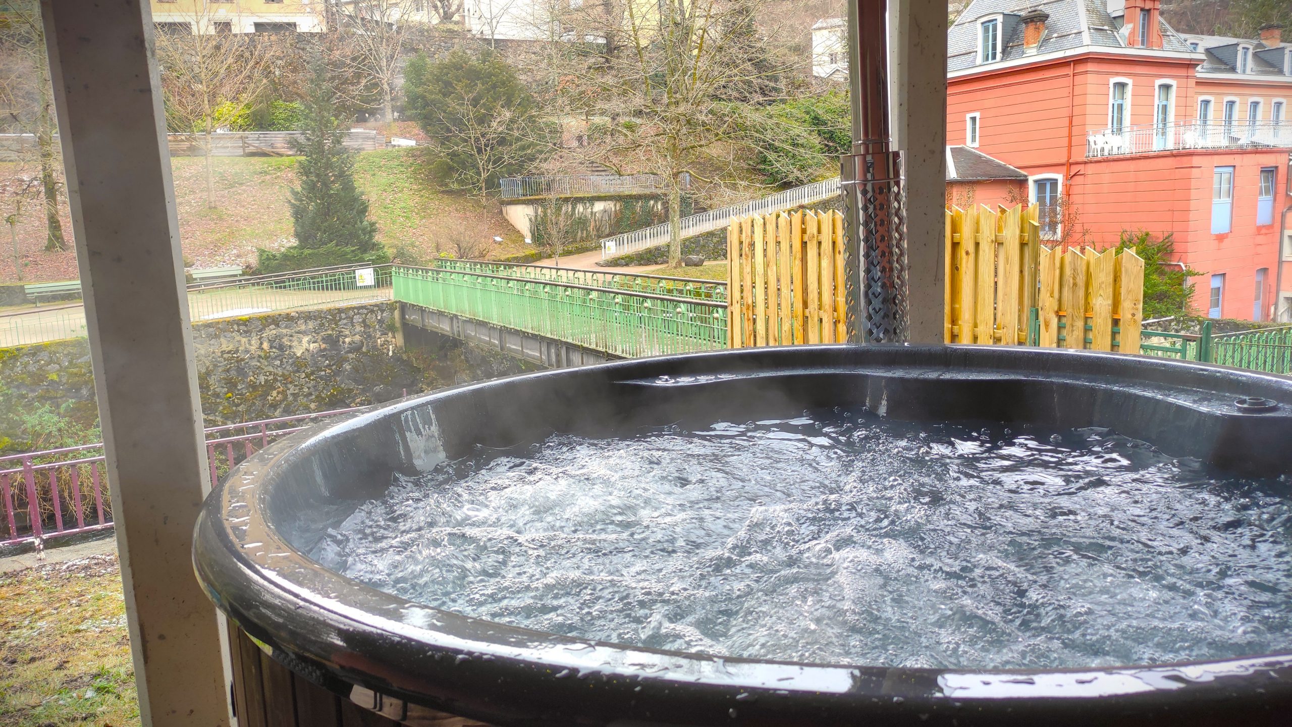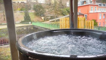 Se Relaxer : Bain nordique chauffé au bois sur la terrasse extérieure. Nature, Chaleur, Douceur tout en dégustant votre boisson et en savourant la vue !